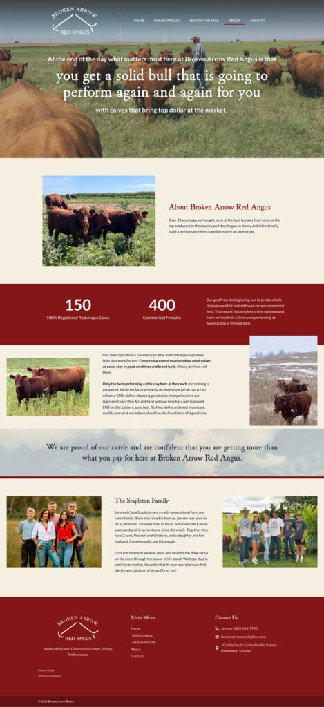 Now, Broken Arrow Red Angus has a website that works alongside their operation. They’re no longer limited to word of mouth or sale barns to get their cattle in front of buyers. Ranchers searching online can now find them, view available cattle, and reach out directly.